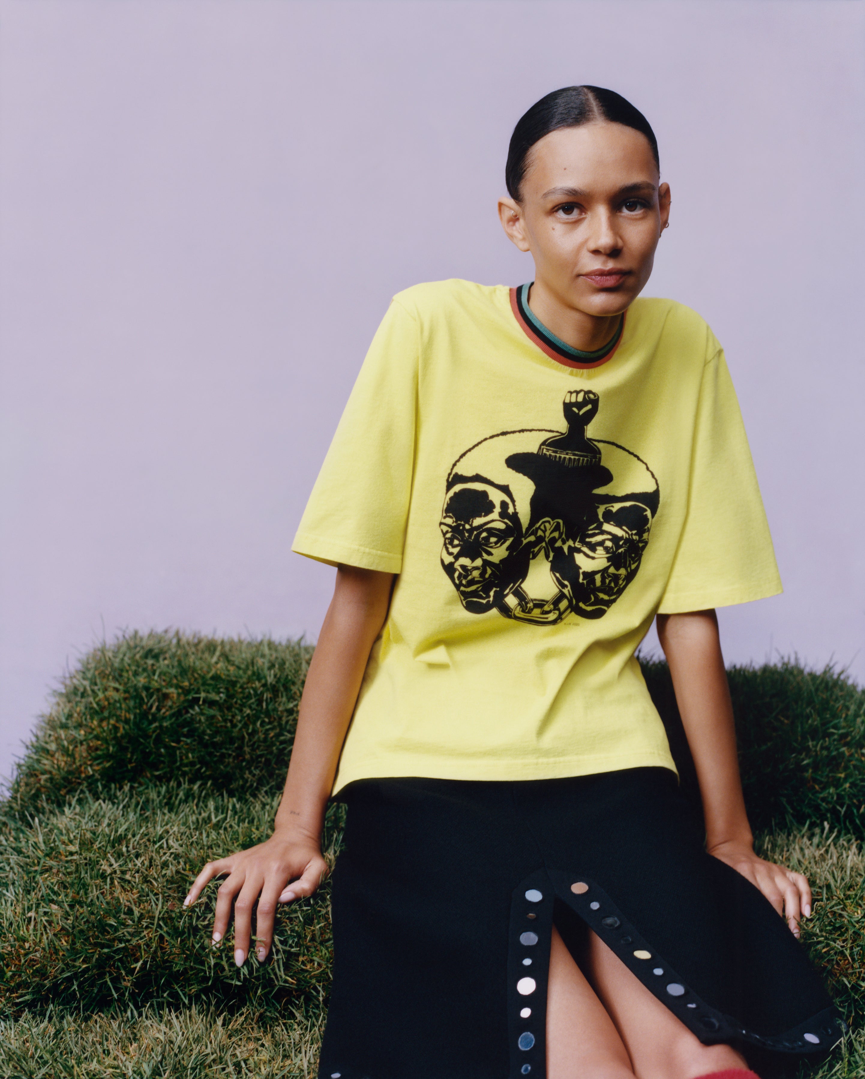 Wales Bonner launches a limited-edition capsule collection in collaboration with the American artist Kerry James Marshall in support of Study and Struggle, a Mississippi-based organization that strives to build a world beyond prisons through political education, community building, and mutual aid.