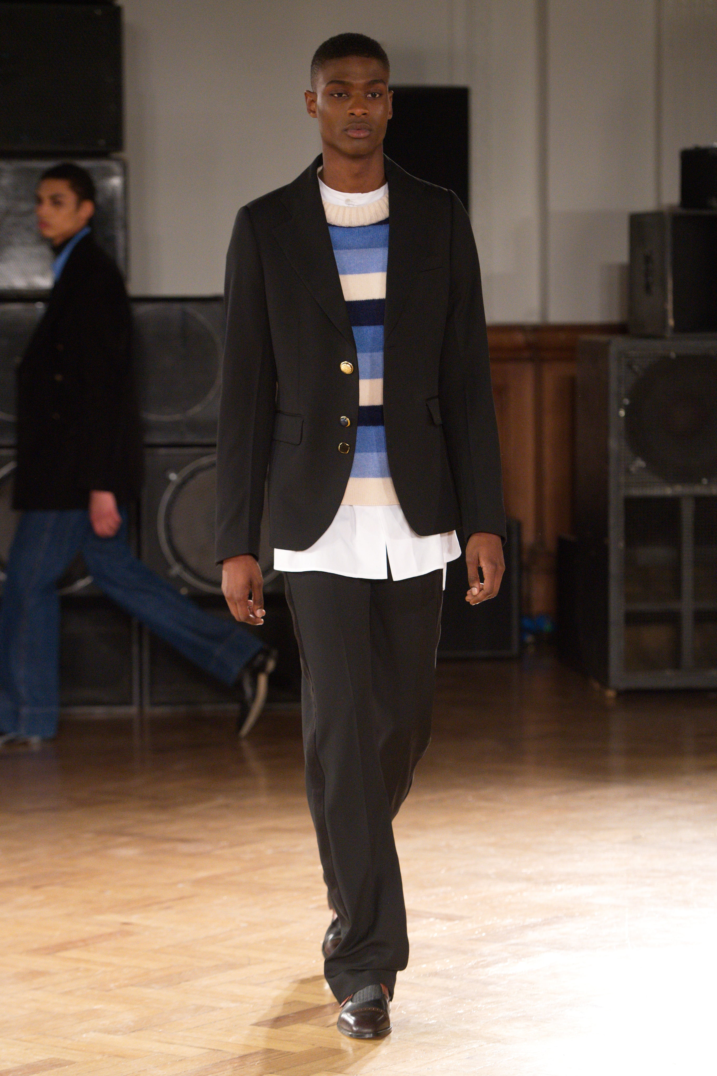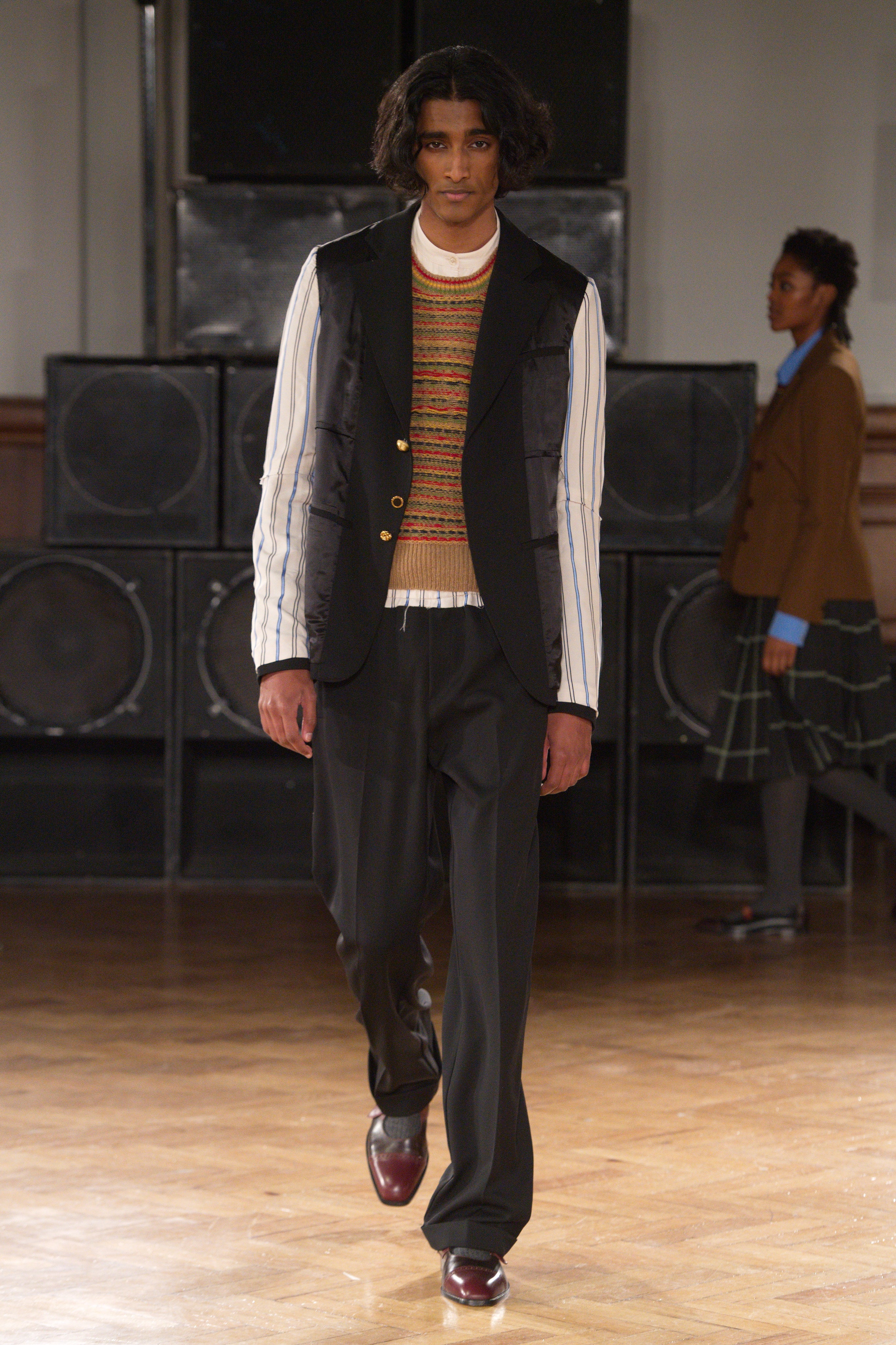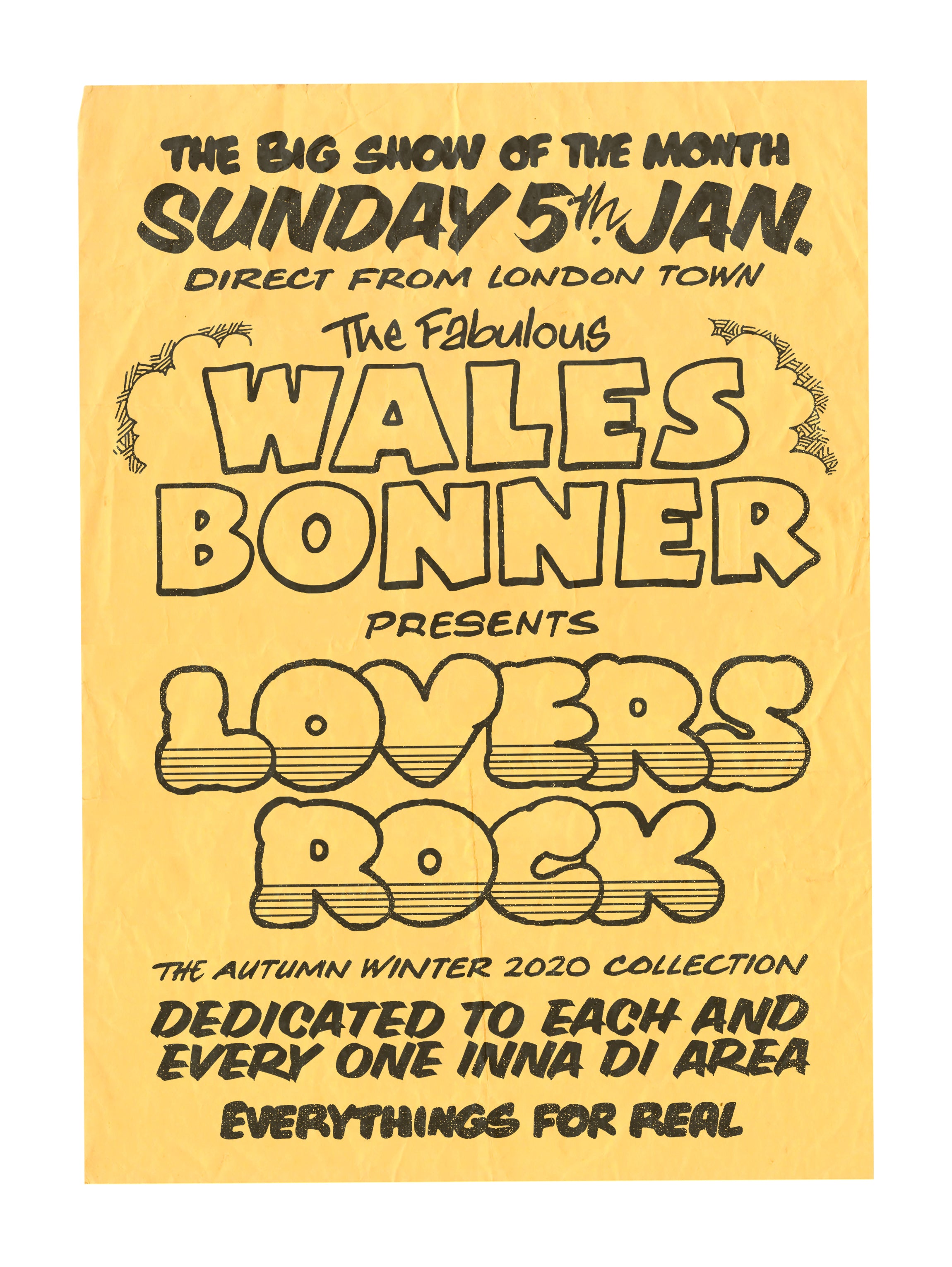 The mood is felt through the rhythmic sweetness of Lovers Rock – tender reggae reverberates from Notting Hill sound systems. Chest-shaking riddims of desire, longing and heartbreak soundtrack a dance between menswear and womenswear introducing a new silhouette.