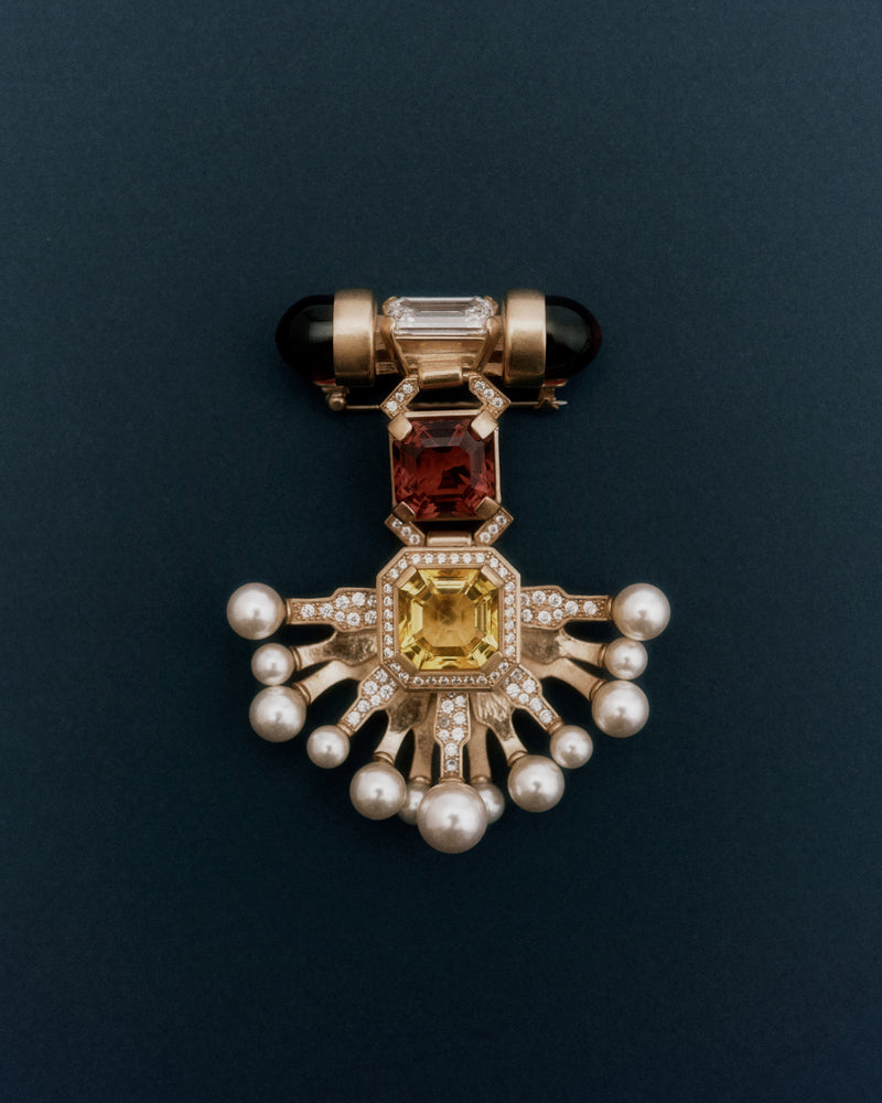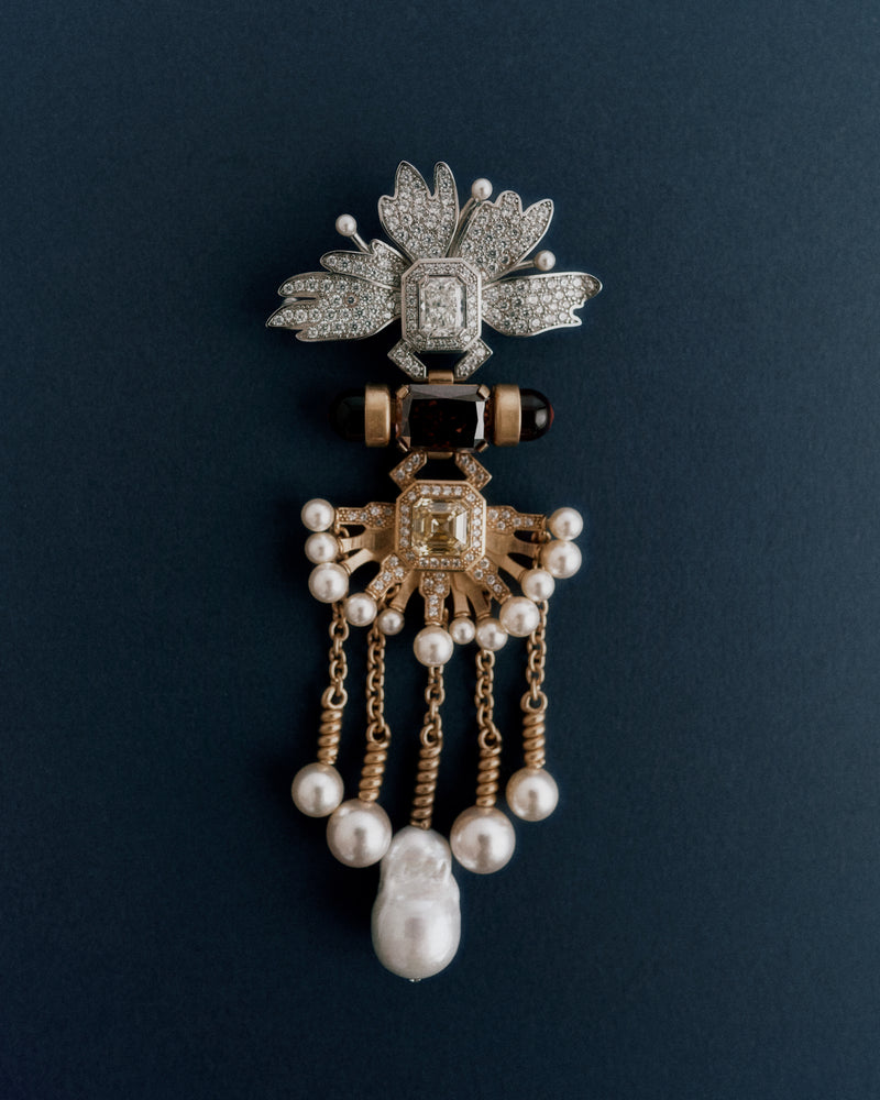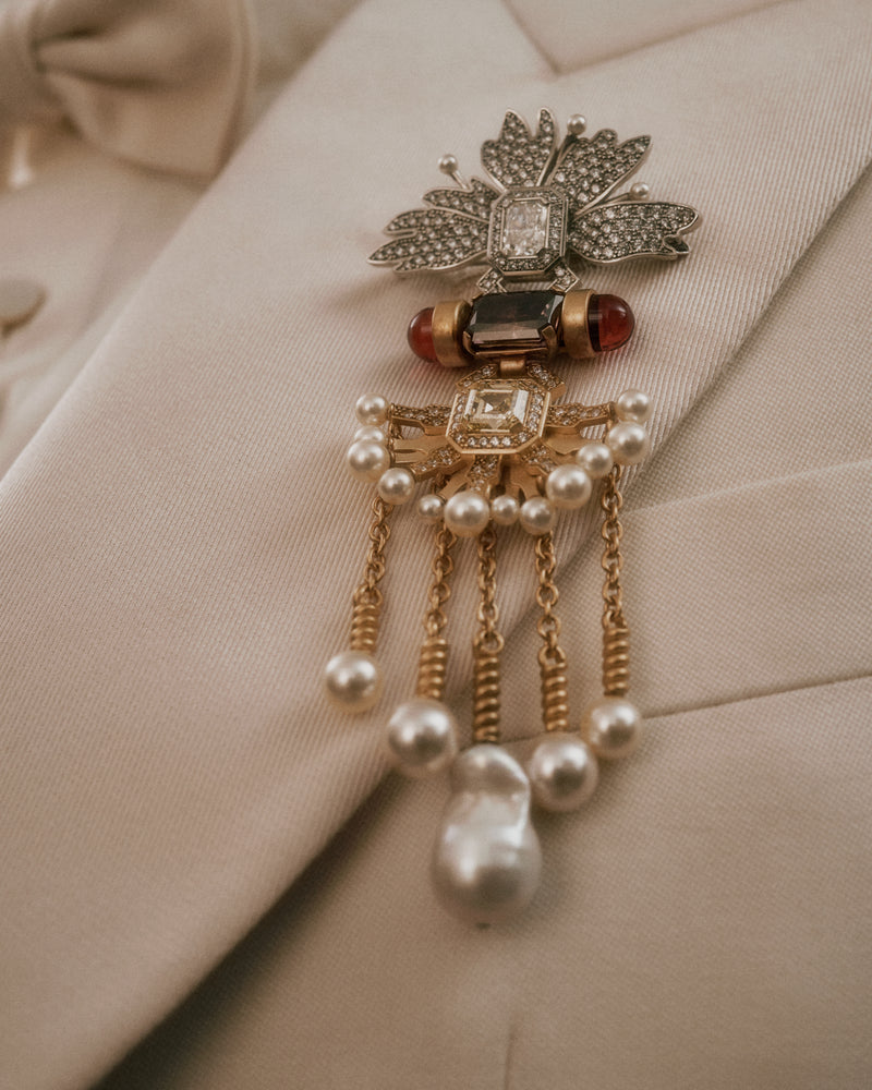 Wales Bonner's bespoke looks include the brand’s first iterations of fine jewellery, produced in partnership with lab-grown diamond company SNOW Diamonds and including emerald-cut stones in garnet, white, and amber.