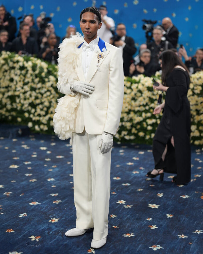 As a member of the host committee, Grace Wales Bonner is proud to have created bespoke looks for Formula 1 driver Lewis Hamilton, photographer Tyler Mitchell, musician FKA Twigs, actor Jeff Goldblum, musician and actor Omar Apollo, artist Eric N. Mack, curator Antwaun Sargent, stylist Eric McNeal, and curator of the Met exhibition, Monica L. Miller.